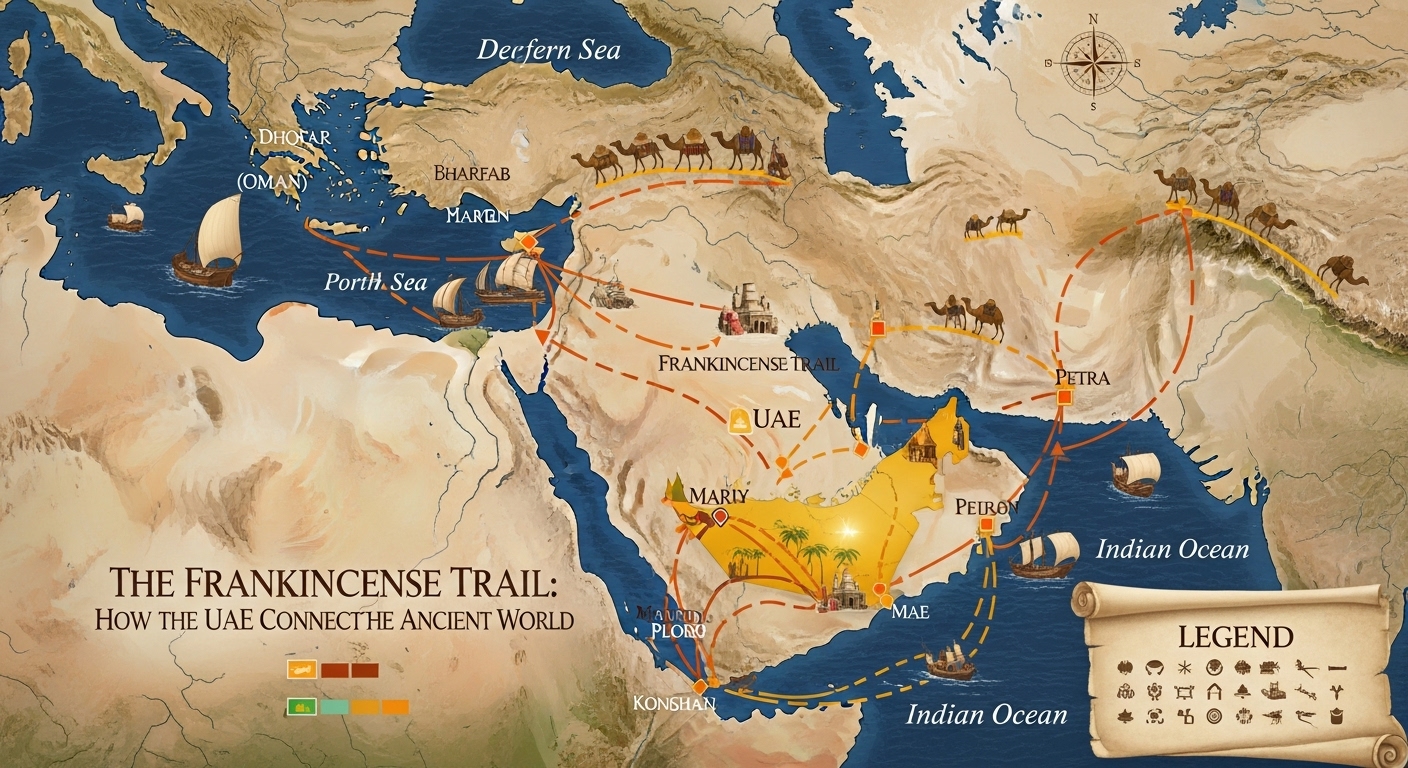 Byinfo@trade.UAEHistoryAndCulture.comDecember 5, 2025 The Frankincense Trail: How the UAE Connected the Ancient World Economy & Industry
